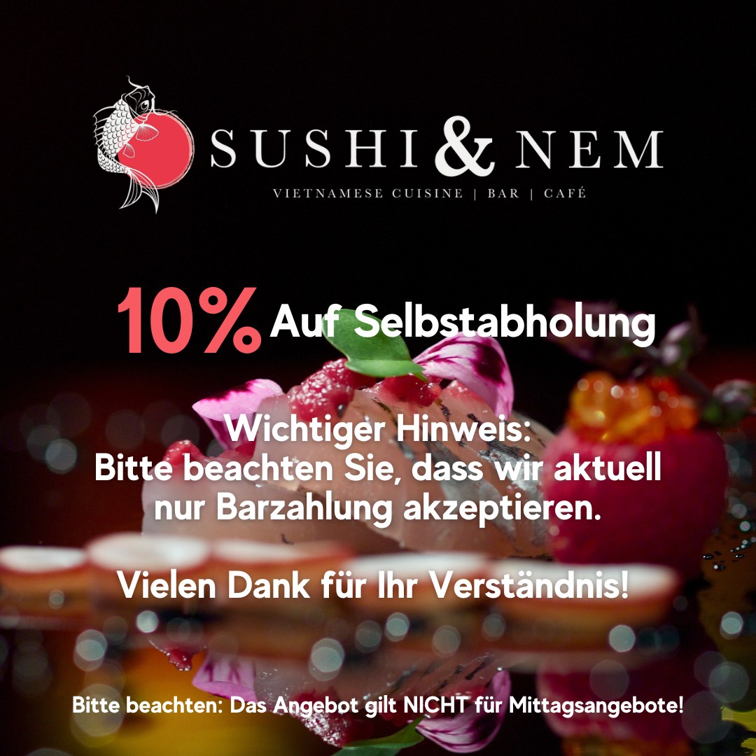 Das Essen im Sushi & Nem ist wie eine kulinarische Rundreise durch Asien und wird Ihre Sinne erfreuen. Ob Sushi, spezielle Sommerrollen oder traditionelle Frühlingsrollen und die scharfen Gerichte Thailands. Wir bieten Ihnen nur das Beste an. BESTELLE JETZT!